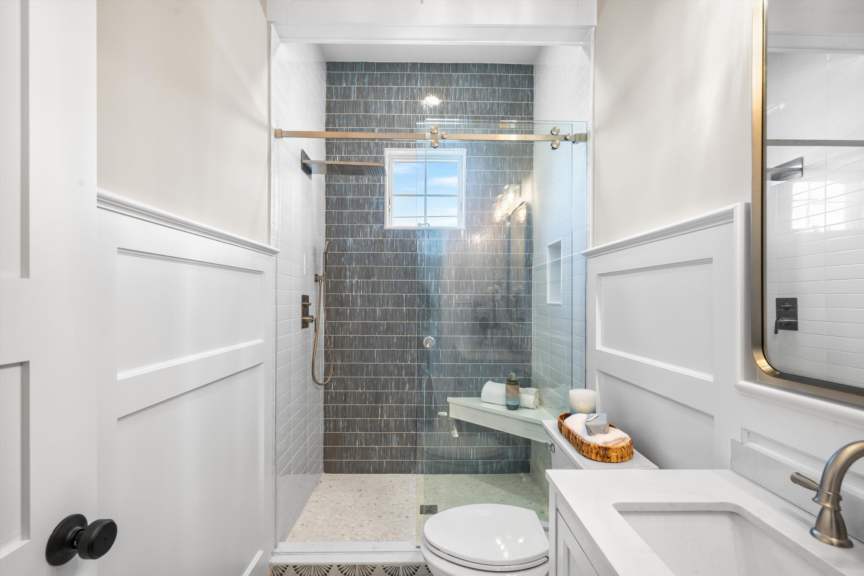 Introducing a spectacular new custom-built residence designed for elevated coastal living. This exceptional 6-bedroom, 4 full bath, 2 powder room home offers over-the-top craftsmanship and luxury finishes throughout. With two spacious living rooms and a resort-style backyard complete with a pool, spa, and cabana, this home is the perfect setting for entertaining and making unforgettable summer memories. This property comes home is delivered fully furnished with high-end selections throughout. Every detail of this home has been curated for a high-end experience, starting with the exterior clad in Canadian White Cedar siding with a 50-year warranty, Anderson 400 windows, and richly grained mahogany decking and porch ceilings. A handcrafted 42-inch mahogany front door welcomes you into a home where sophistication meets comfort. Inside, soaring ceilings up to 15 feet on the second level create an open and airy feel, complemented by extensive custom millwork, interior brick accents, and Bluestone elements throughout. The gourmet kitchen is outfitted with top-tier appliances including a 48 Sub-Zero refrigerator, Wolf dual fuel range, and dual Cove dishwashers. Two spacious living areas provide ample space for relaxation and entertaining, while a 3-stop elevator ensures seamless access to every level. For added convenience, the home includes two full-size LG washer dryer sets and a full security system with cameras and integrated audio throughout. The outdoor space is a true private retreat, featuring a 12 x24 heated pool with Pentair remote phone-controlled technology and a 7 x7 raised spa with a cascading waterfall. The multi-level cabana and garage are equally impressive, complete with a full-size refrigerator, quartz-topped bar, custom cabinetry, and a built-in TV perfect for effortless entertaining. The second-floor deck offers bay views and year-round comfort, thanks to two built-in Bromic gas heaters.